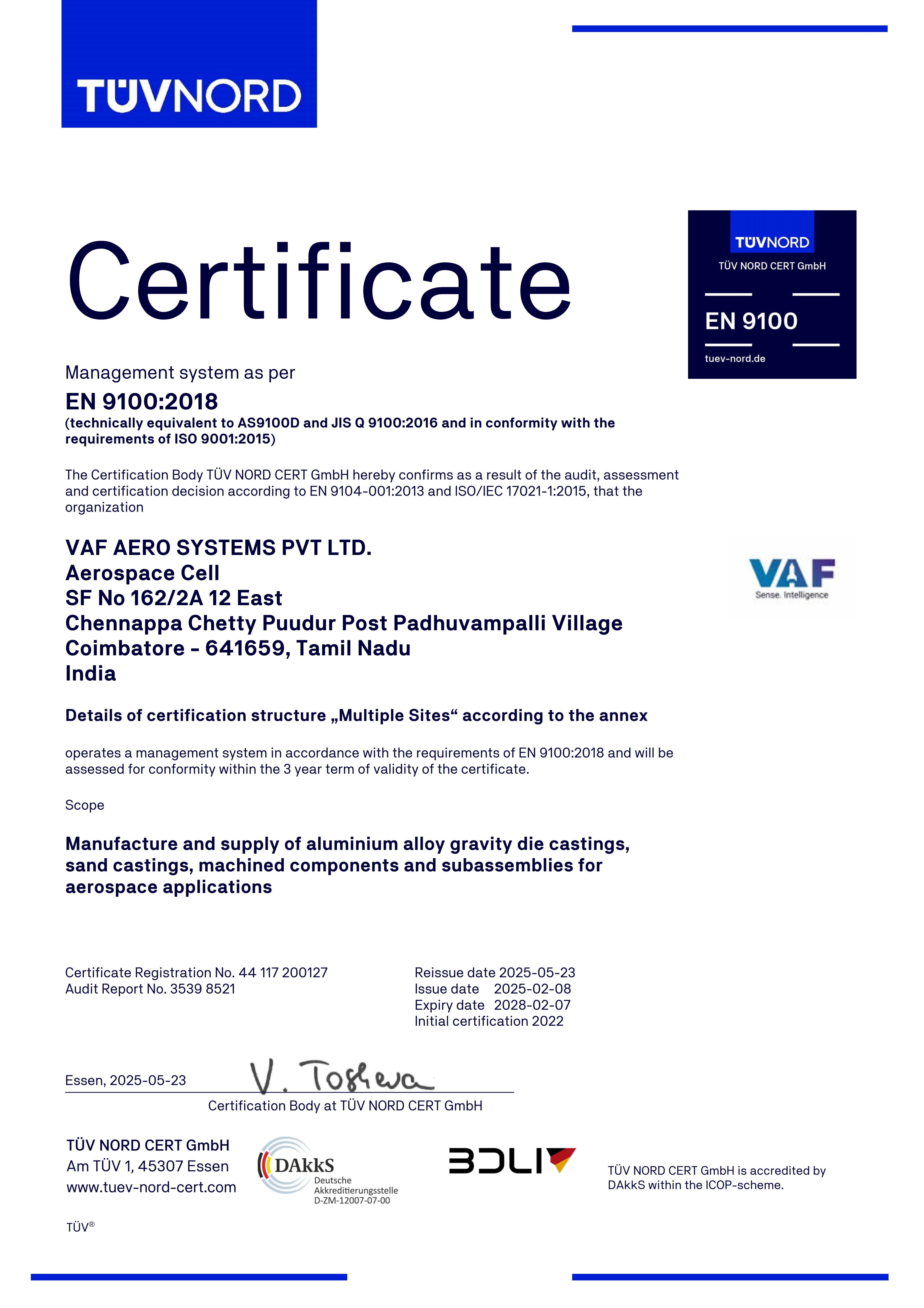 EN 9100-2018 Certification - VAF
